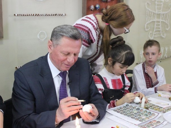 У Луцьку мер разом з дітьми малював писанки. ФОТО