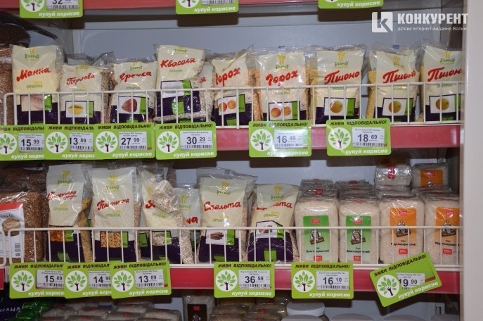 У самому магазині корисну їжу позначено зеленими цінниками, на яких написано "Живи відповідально! Купуй корисне". До нешкідливої продукції організатори відносять фрукти, овочі, соки, води та крупи. За покупку цих товарів клієнти отримуватимуть додаткові бали.