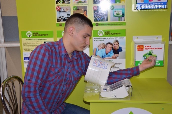 У луцькому супермаркеті "Наш Край. Гурман", який входить до інвестгрупи Volwest Group, створили "куточок здоров'я", де кожен відвідувач може виміряти тиск, залишити відпрацьовані батарейки чи пляшкові кришки.