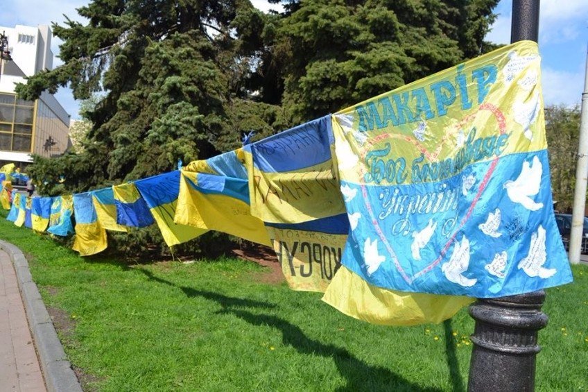 Захід організувала волонтерка батальйону «Айдар» з Києва Катерина Валевська. Жінка самотужки зібрала 160 прапорів з усієї країни та різних військових частин.