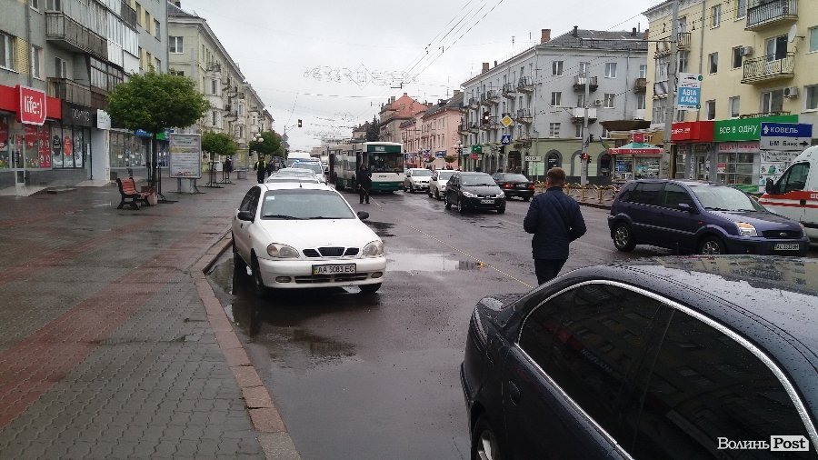 У Луцьку таксист не зміг обігнати тролейбус. ФОТО