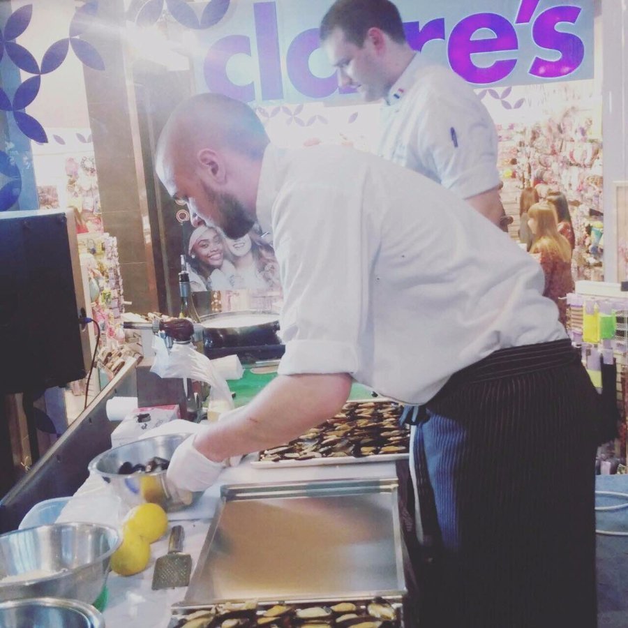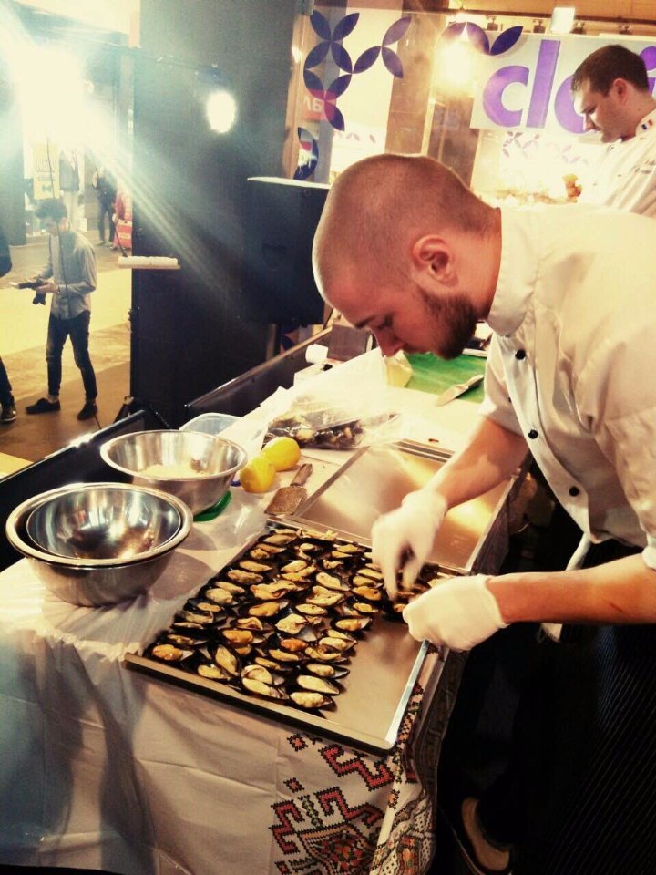 Гості мали змогу насолоджуватися цим дійством з 13.00 до 21.00, куштуючи запечені мідії, приготовані шеф-кухарем ресторану Patio di Fiori Андрієм та сушефом Юрієм.