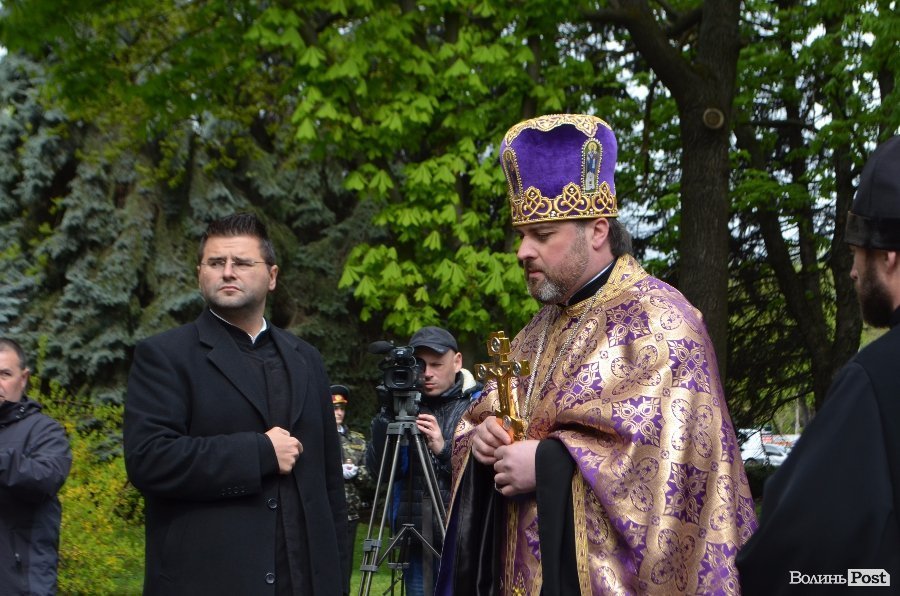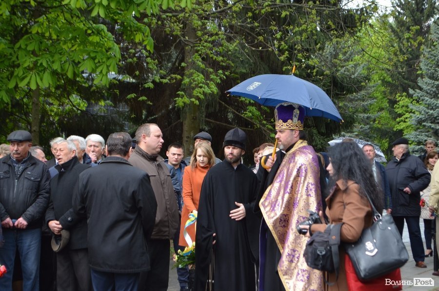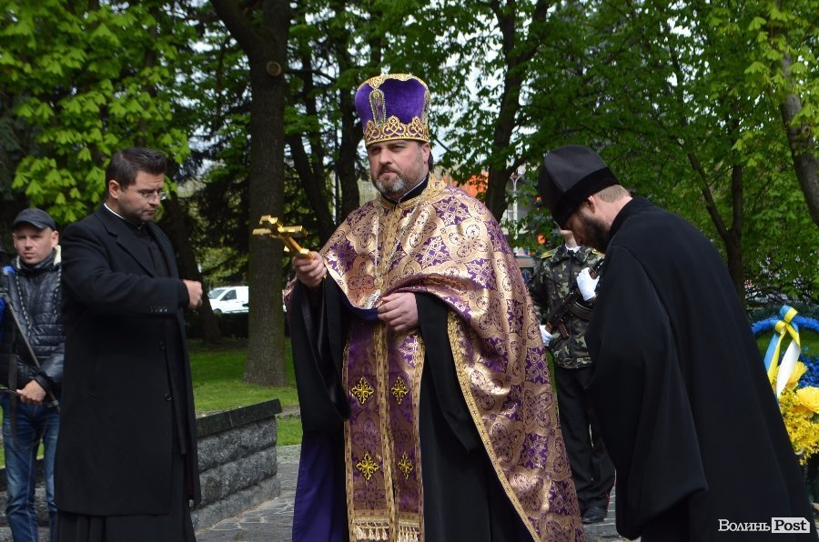 Біля пам'ятного знаку відбулась панахида за загиблими та покладання квітів.