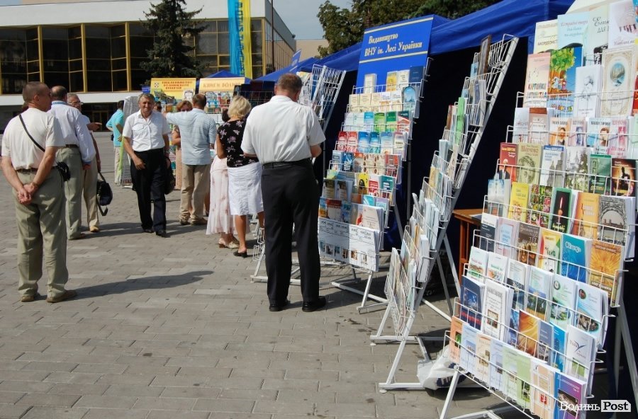 Цьогоріч вже всьоме на Театральному майдані міста розгортає свою діяльність книжковий ярмарок, де відбудеться торгівля українською книгою від видавництв-учасників, а це: ПрАТ «Волинська обласна друкарня», книгарня «Руніка», ВМА «Терен», видавництво «Навчальна книга – Богдан» (м. Тернопіль), ВНУ ім. Лесі Українки, видавництво «Ключі» та інші.