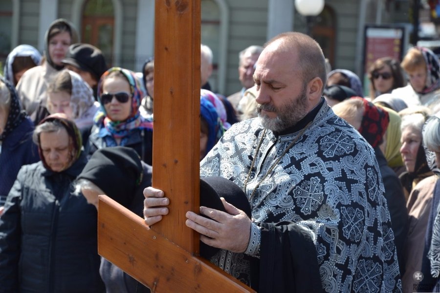 Богослужіння очолив декан Свято-Троїцького кафедрального собору міста Луцька протоієрей Микола Нецкар. Священнослужителі Луцького міського деканату, студенти ВПБА та віряни пройшли вулицею Лесі Українки від Хрестовоздвиженського храму до Свято-Троїцького кафедрального собору. Під час 12 зупинок упродовж хресного ходу читались уривки із Євангелія, де оповідається про останні дні життя, Хресні страждання і смерть Спасителя на Голгофі. Також після кожного читання лунала молитва за мир у світі та в Україні, за добробут і процвітання волинського краю.