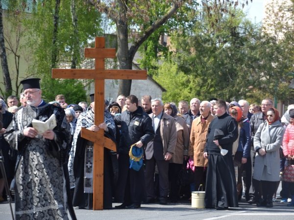 Під час хресного ходу віруючі несли хрест, яким після кожної молитви протоієрей Микола Нецкар благословляв учасників процесії.