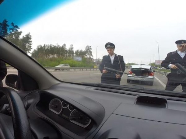 У мережі з'явився забавний відеосюжет, на якому "українські фашисти" радо вітають пасажирів автомобіля з російськими номерами.
