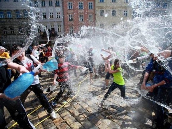 Нагадаємо, що традиційне свято обливання водою відбувається у Львові вже третій рік поспіль. А сьогодні на площі Ринок, перед львівською ратушею, працює спеціальний майданчик, облаштований для Поливаного понеділка.