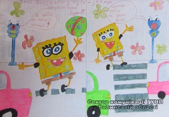 Також школярі показали поліцейським малюнки на тематику безпеки дорожнього руху.