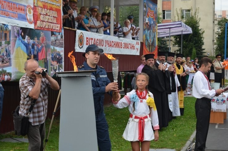 Факел змагань запалила лауреат Всеукраїнської акції «Герой-рятувальник 2011 року» учениця 8-го класу загальноосвітньої школи села Дубечне Старовижівського району Марія Курилюк.