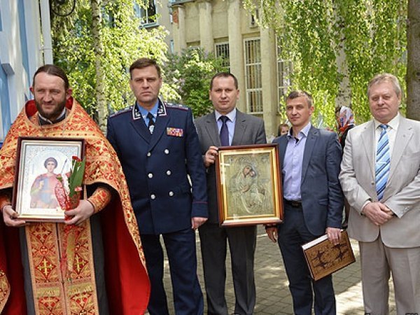 Від усього колективу Головного управління Національної поліції в області Петро Шпига подарував громаді храму ікону Божої Матері «Споручниця грішних» і копію Луцького Євангелія XIV століття.