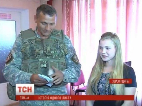 На Херсонщині демобілізований з АТО боєць розшукав дівчинку, що написала йому листа два роки тому. Усю службу на Донбасі він пройшов із цим оберегом під бронежилетом, а коли повернувся з армії – приїхав до дитячого будинку в Каховку, щоби познайомитися з автором листа і розповісти дітям, яку велику силу мають їхні послання бійцям, ідеться в сюжеті "ТСН".