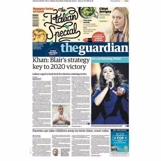Відоме британське видання "The Guardian" опублікувало на першій сторінці статтю про перемогу Джамали з назвою "Ти чуєш, Путін?".