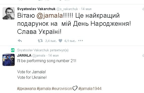 Раніше ж українська виконавиця заявляла про те, що її перемога означатиме, що європейці не байдужі до долі кримських татар та України вцілому.