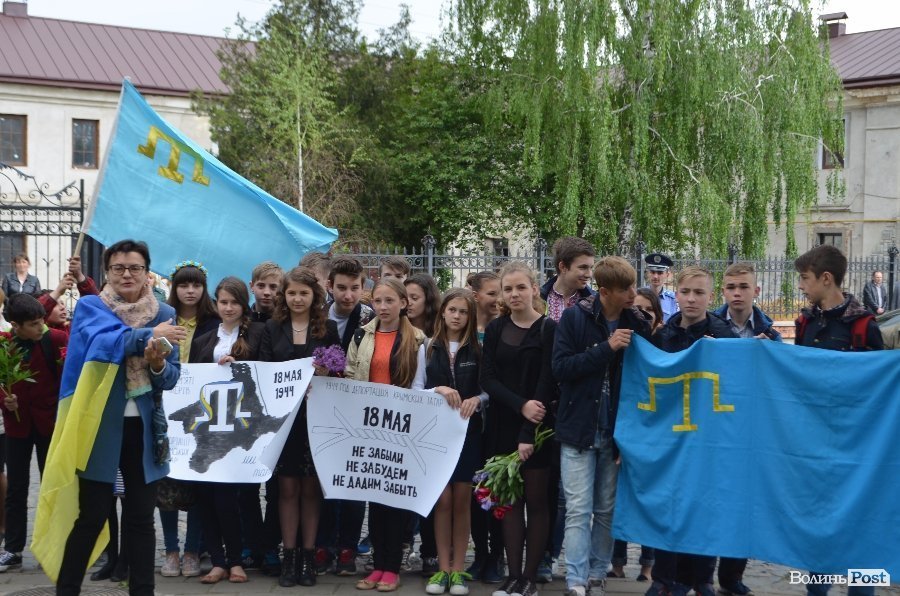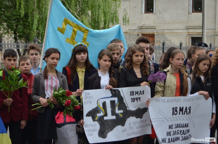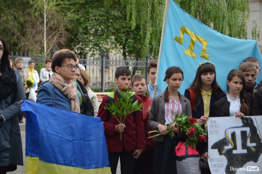 Сьогодні у Луцьку вшановували пам'ять жертв геноциду кримськотатарського народу. Саме цього дня, 18-го травня, 1944 року з Кримського півострова було депортовано близько 183 144 кримських татар, за татарськими джерелами — 228 500, з яких тільки упродовж перших півтора років померло близько 110 тисяч осіб.