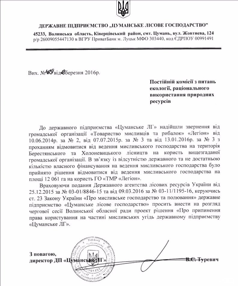На Волині державне підприємство відмовилося від мисливських угідь. ДОКУМЕНТ