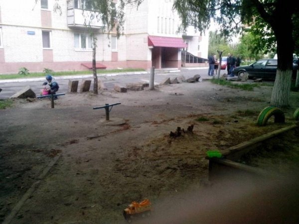 "Відродження 53,53а дитячий майданчик. Мешканці будинку 53а вирішили що майданчик завеликий для дітей.Тому без дозволу інших мешканців збільшили стоянку для машин.Тепер машини будуть стояти "впритик" до пісочниці,бо бачиш їм немає де ставити машини", - йдеться в дописі.