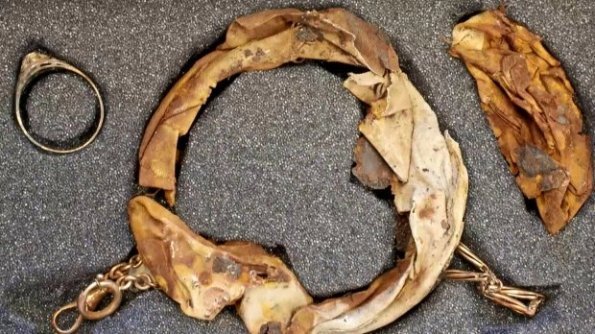 Горня відібрали у в’язнів табору Аушвіц, а вже після війни виставили як експонат у музеї. Під дном знайшли каблучку і ланцюжок.