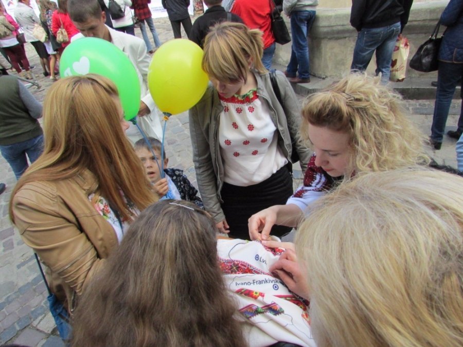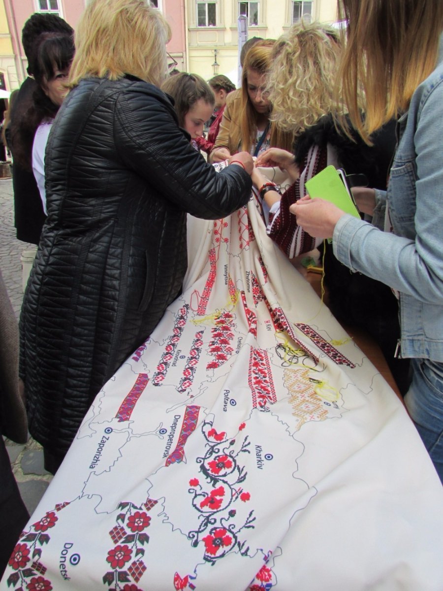 Святкуючи День української вишиванки, на площі Ринок у Львові вишивали найбільшу карту України. Полотно має шанс потрапити до Книги рекордів.