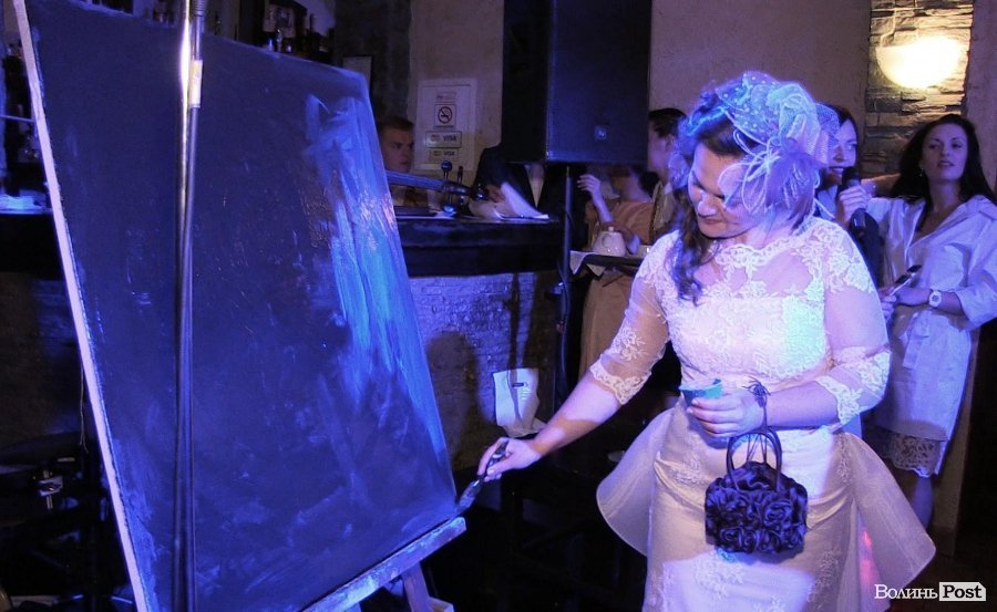 Ведуча рубрики «Стильний Луцьк» Майко Марина, хобі якої - художнє та графічне мистецтво, винесла до залу велике полотно, на якому був зображений абстрактний малюнок, і запропонувала відгадати гостям, чий силует прихований під «червоним сонцем пустелі». Після цього гостям було запропоновано взяти в руки пензлики та зобразити звичайний чорний квадрат, замалювавши чорною фарбою все полотно. Головна ідея спільної роботи - дати можливість кожному вкласти частинку себе в подарунок та зрозуміти, що малювати може кожен.