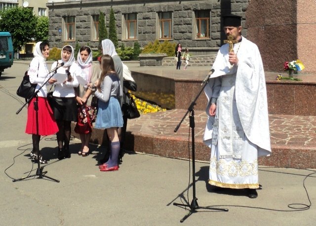 На початку священнослужителі звершили заупокійну літію за спокій душі Кобзаря. По тому учасники заходу поклали квіти до монументу Тарасу Шевченку.