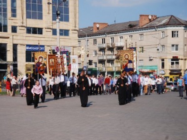 Першими під час процесії йшли із маленькими хоругвами наймолодші віряни – вихованці недільної школи при Свято-Покровському кафедральному храмі. Тут був відслужений короткий молебень, а після прочитання Євангелія вірних було окроплено свяченою водою.