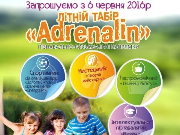 Нагадаємо, літній табір "Адреналін" діє з 6 червня по 26 серпня для школярів від 6 до 14 років. Тривалість табірної зміни – 10 робочих днів. Вартість зміни – 1000 грн.