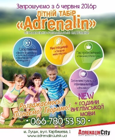 Літній табір «Адреналін Сіті» – це улюблене місце для всіх дітей, які хочуть весело, цікаво і пізнавально провести свої канікули та відпочити від школи, батьків, телевізорів і комп'ютерів.