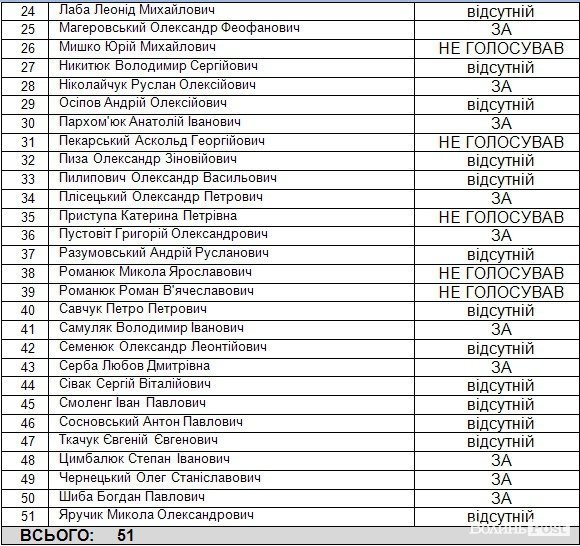 Результати відкритого голосування