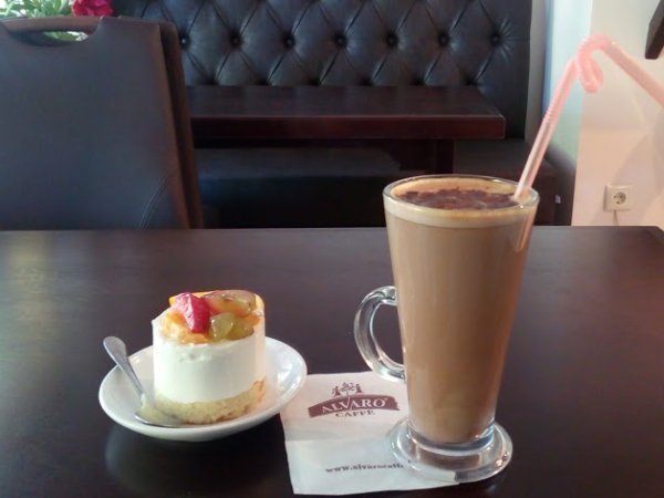 Сьогодні мені потрапила на очі зовсім невеличка кав'яренька "Alvaro", яка нещодавно відчинила свої двері відвідувачам. Розташувалась вона на проспекті Волі. Заклад зовсім новий, тому брудних закапелків у залі я не побачила.