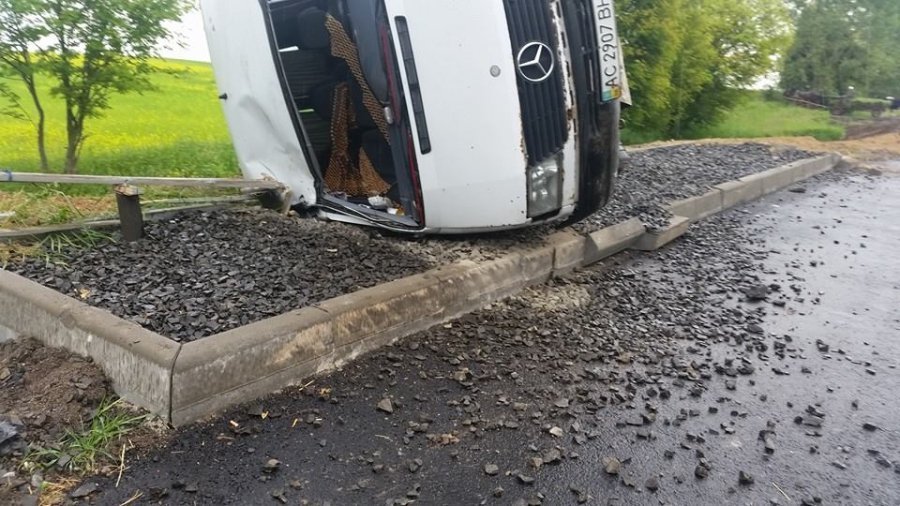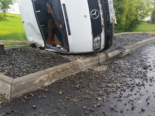 В селі Шклінь Горохівського району перекинувся мікроавтобус.