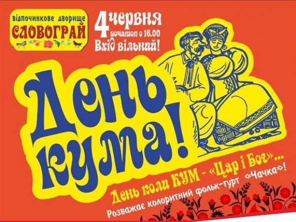 Святкова програма до Дня кума розпочнеться о 16:00 годині. Усіх гостей відпочинкового дворища "Словограй" розважатиме колоритний фолк-гурт "Чачка" з жартівливими забавами, конкурсами та гінес-шоу. Серед присутніх буде проведений пивний конкурс та розіграш "пампушок бажань".