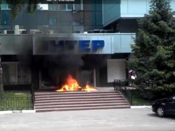 Невідомі в масках підпалили офіс «Інтера» в Києві. ВІДЕО