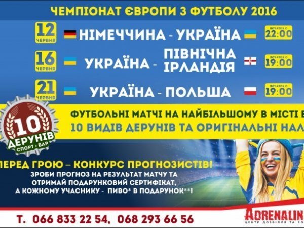 Спорт-бар «10 дерунів» запрошує на перегляд матчів Євро-2016