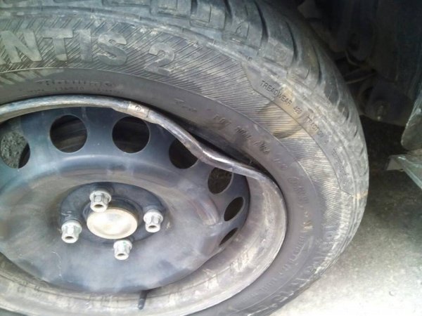 У результаті – в транспортному засобі деформувався диск і лопнуло колесо.