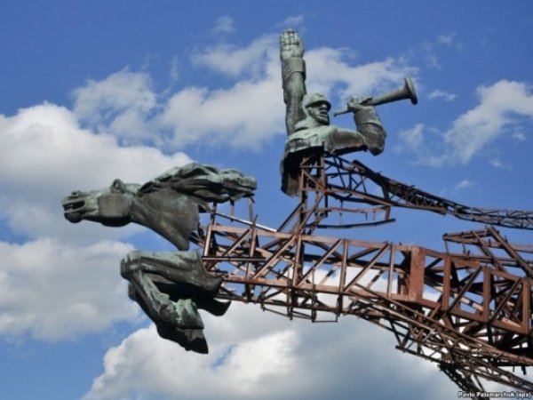 На знімку зображений напівзруйнований пам'ятник радянської епохи.