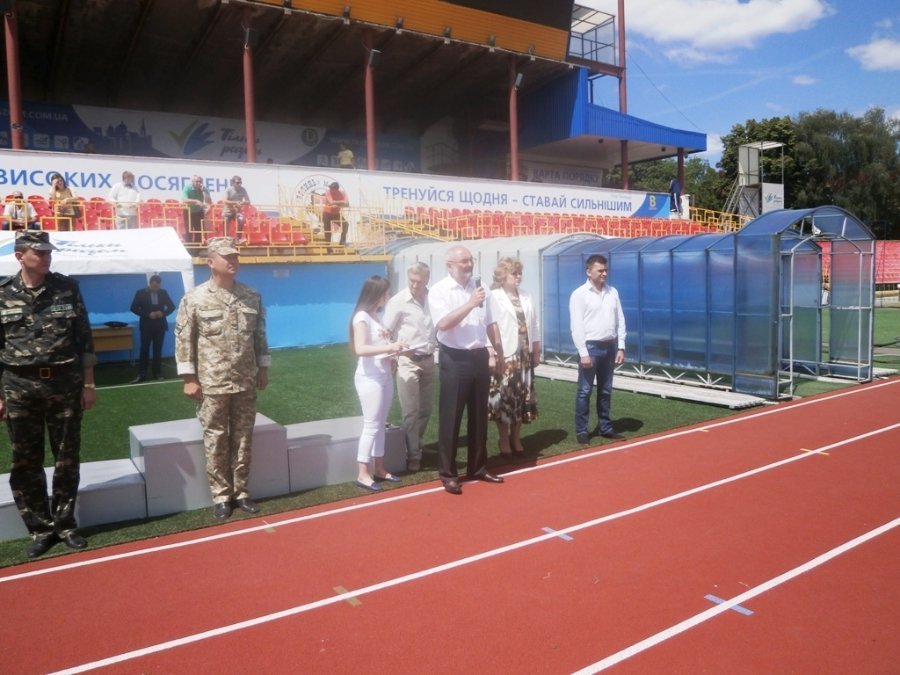 Створити гарний настрій для юних спортсменів та їх наставників на стадіон завітали учасники художньої самодіяльності Віталій Капітула з Торчинського професійного ліцею та учениця КЗ «Луцька ЗОШ І-ІІІ ст. №11 - колегіум» Оксана Фурман.
