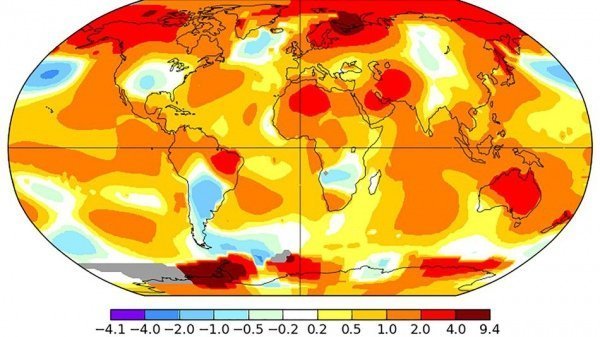 Середня глобальна температура поверхні Землі була на 0,93 градуса за Цельсієм вищою, ніж у середньому для цього місяця.