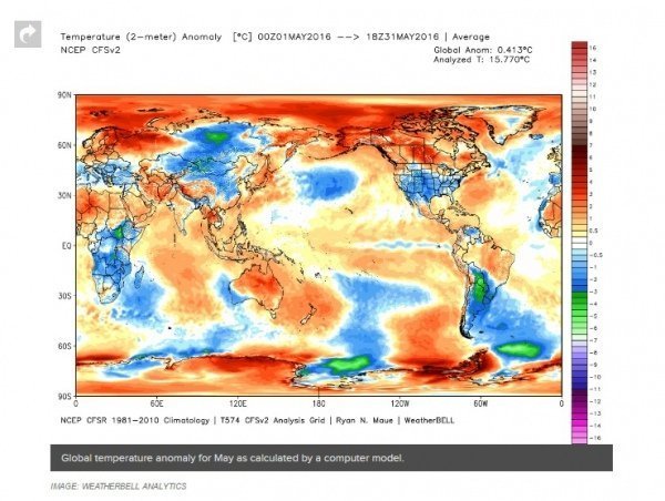 За попередніми даними від NASA, травень 2016 року став найтеплішим травнем за всю історію метеоспостережень з 1880 року.