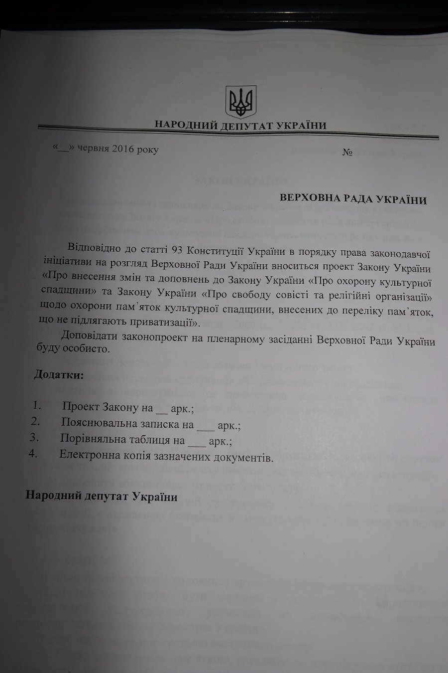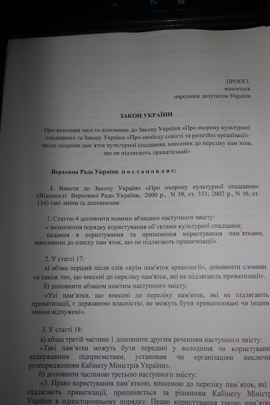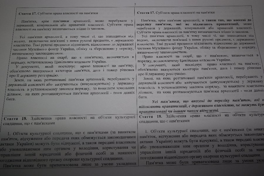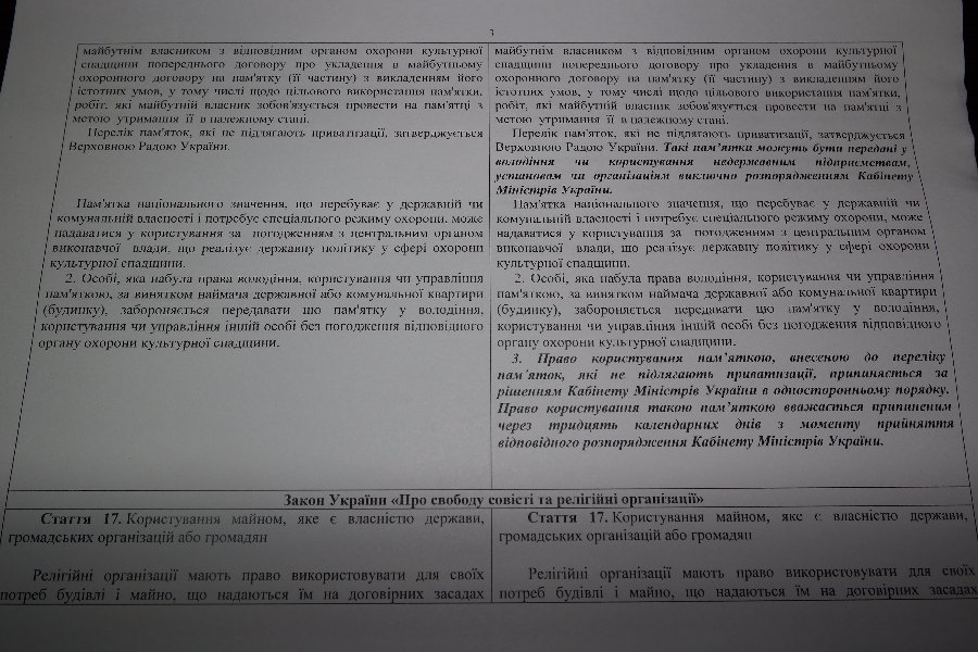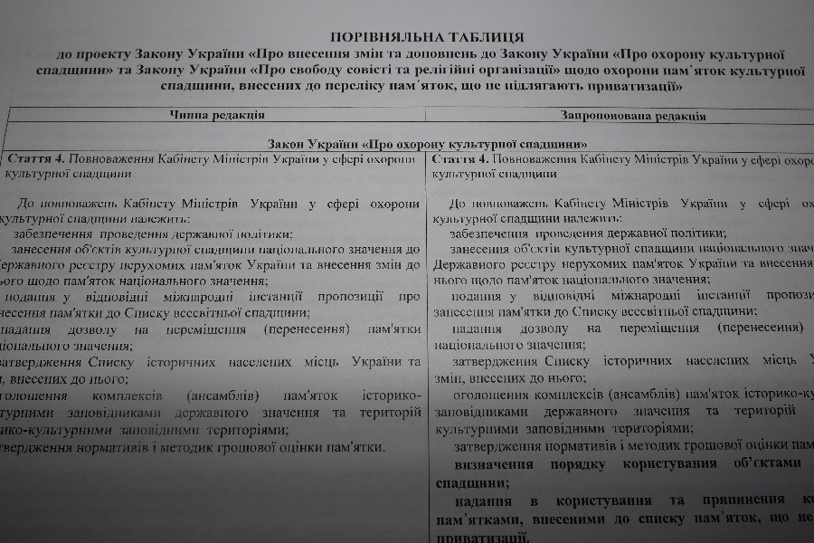 Новатори пропонують корективи до Закону «Про охорону культурної спадщини» та Закону України «Про свободу совісті та релігійні організації» щодо охорони пам᾿яток культурної спадщини, що не підлягають приватизації».