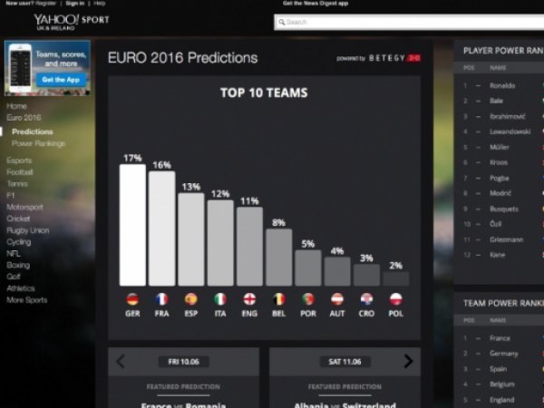 Тепер на сайті є секція спортивної аналітики щодо Євро-2016. У цій секції знаходяться прогнози для кожної гри, прогнози щодо переможця чемпіонату, а також рейтинг найсильніших команд.