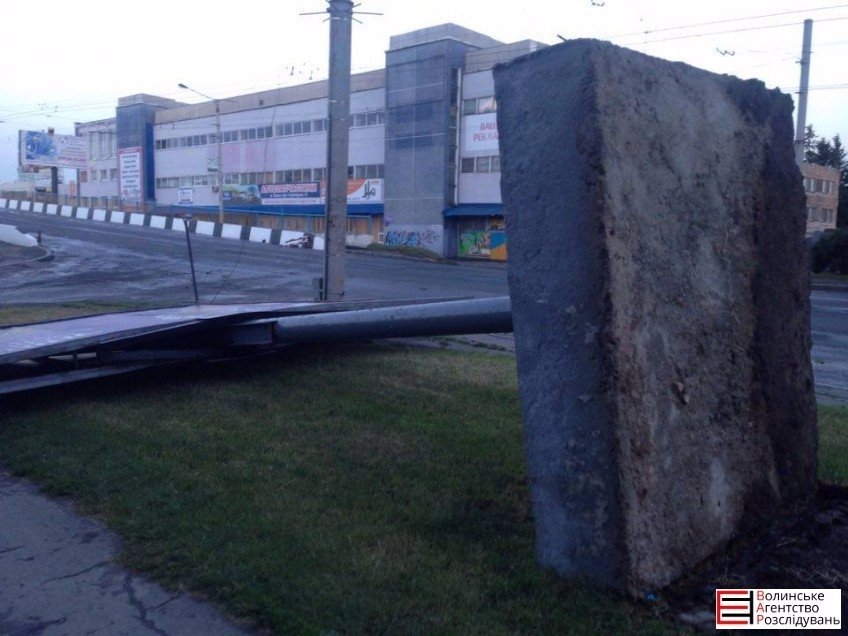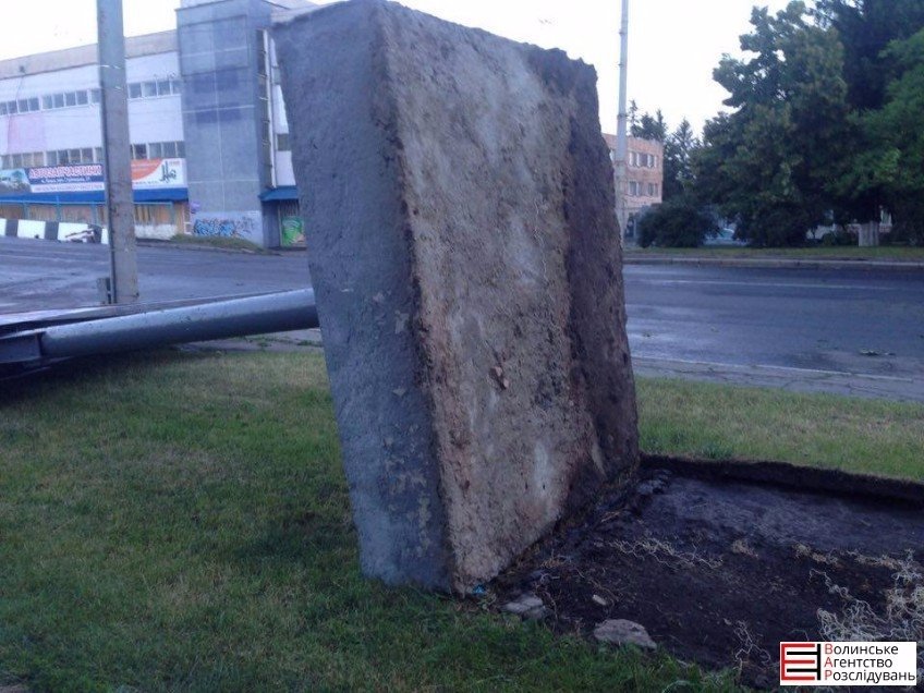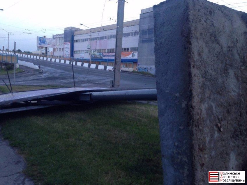 Рекламний об’єкт станом на 21:25 17-го червня у горизонтальній позиції лежав на вулиці Рівненській неподалік автозаводу, - пише "Волинське Агентство Розслідувань".