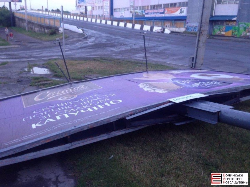Через сильний вітер у Луцьку впав білборд. ФОТО