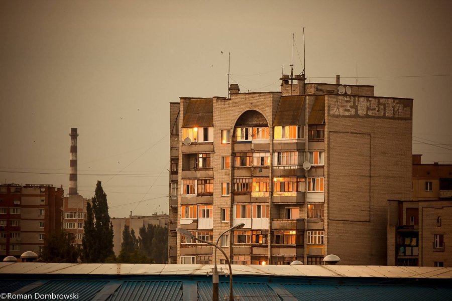 В об'єктив потрапили багатоповерхівки, торгові центри та залізничний вокзал в променях згасаючого дня.
