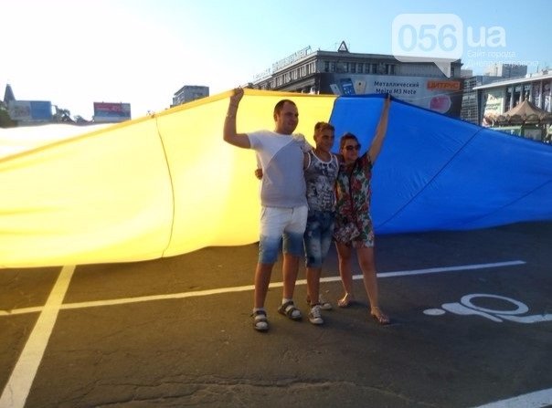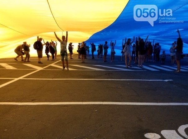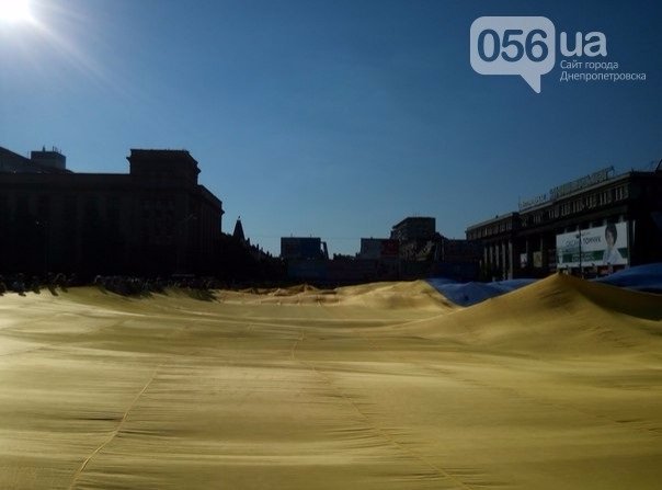 У центрі Дніпра, на пл. Героїв Майдану, розгорнули національний прапор України розміром 40х60 м. Прапор повністю відповідає реальному, його пропорції становлять 2:3.