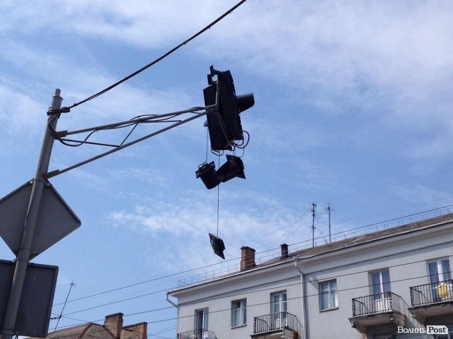 У Луцьку деталь від тролейбуса розтрощила світлофор. ФОТО
