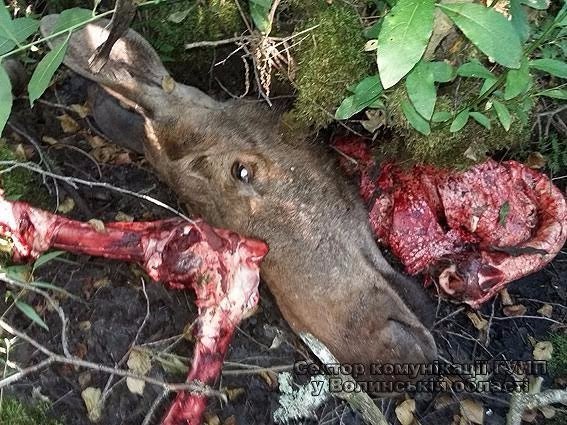 В урочищі Сніжин біля села Люб’язь Любешівського району на території Національного природного парку "Прип’ять-Стохід" невідомі особи незаконно вполювали лося.