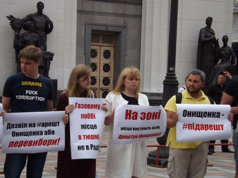 Активісти прийшли з вимогою до депутатів проголосували за арешт народного депутата Олександра Онищенка. Також ініціатори заходу вимагають зняти з нього недоторканність.