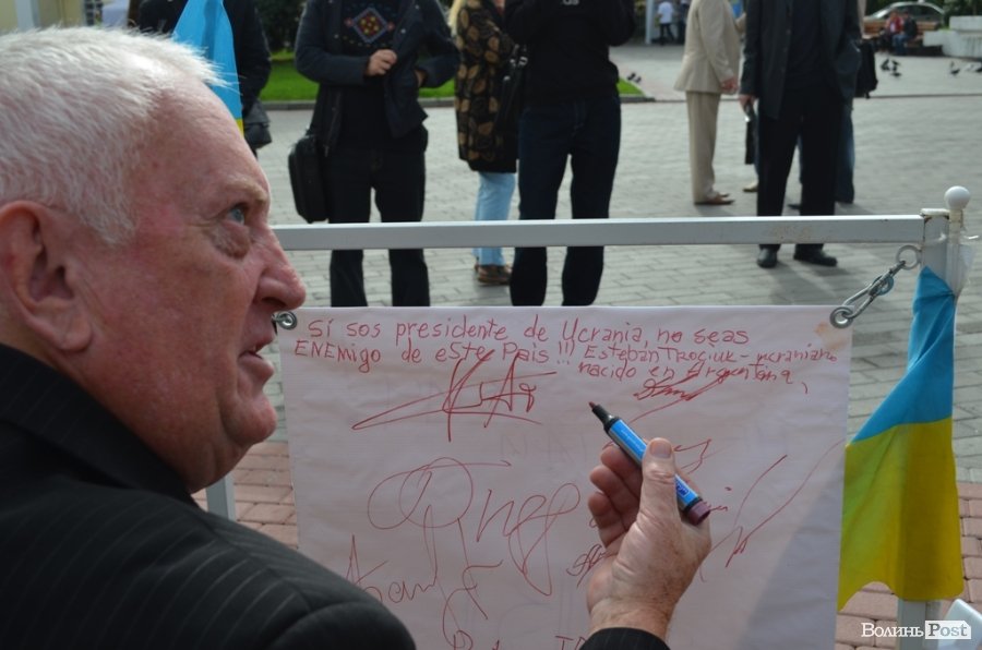 Ініціатор акцій в Луцьку Костянтина Байчук запропонував присутнім на плакаті написати послання Президенту України Віктору Януковичу: «Янукович, не чіпай ТВІ та свободу слова!!!» та підписатися під цими словами всім бажаючим. Депутат та журналіст Андрій Калахан добавив послання фразою «Народ цього не забуде!».