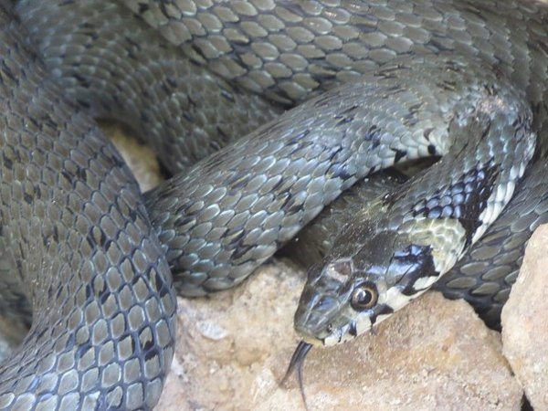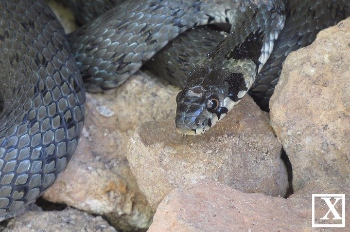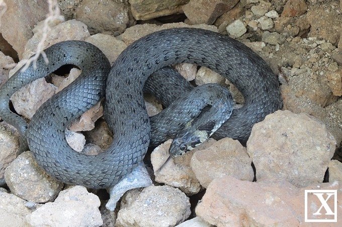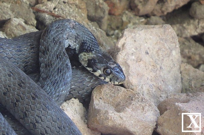 З огляду на відсутність характерних яскравих жовтих «вушок», це може бути не вуж.